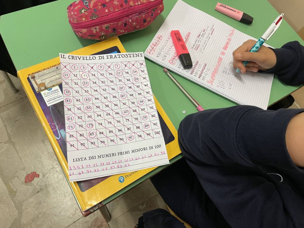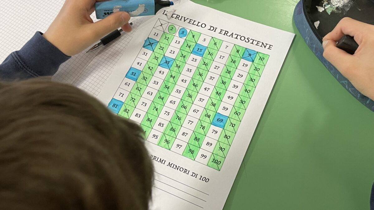 Continuano le lezioni di Aritmetica nella Scuola Secondaria di I grado: questa mattina, insieme al Prof. Andrea Pugliese, gli alunni della 1 C hanno imparato a conoscere i numeri primi ed hanno scoperto anche un antico algoritmo per individuarne alcuni: il crivello di Eratostene!