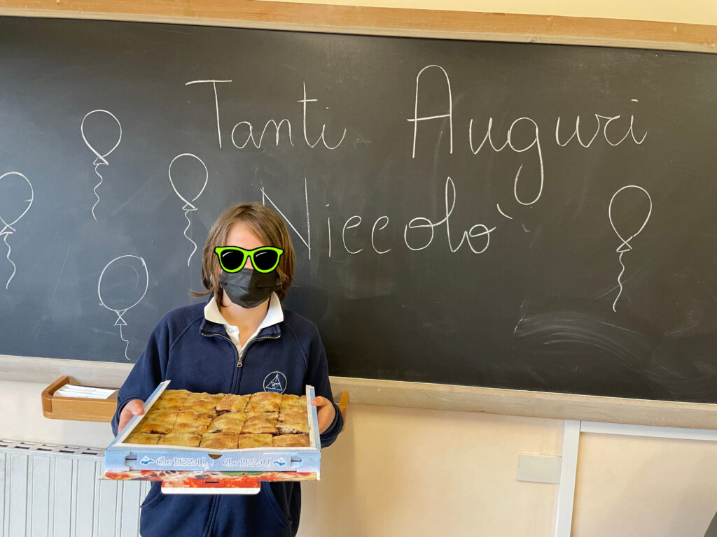 E nel clima gioioso di questa lezione gli alunni hanno anche festeggiato il compleanno di un loro compagno, che per l’occasione ha deciso di offrire a tutti una buonissima pizza con la nutella!