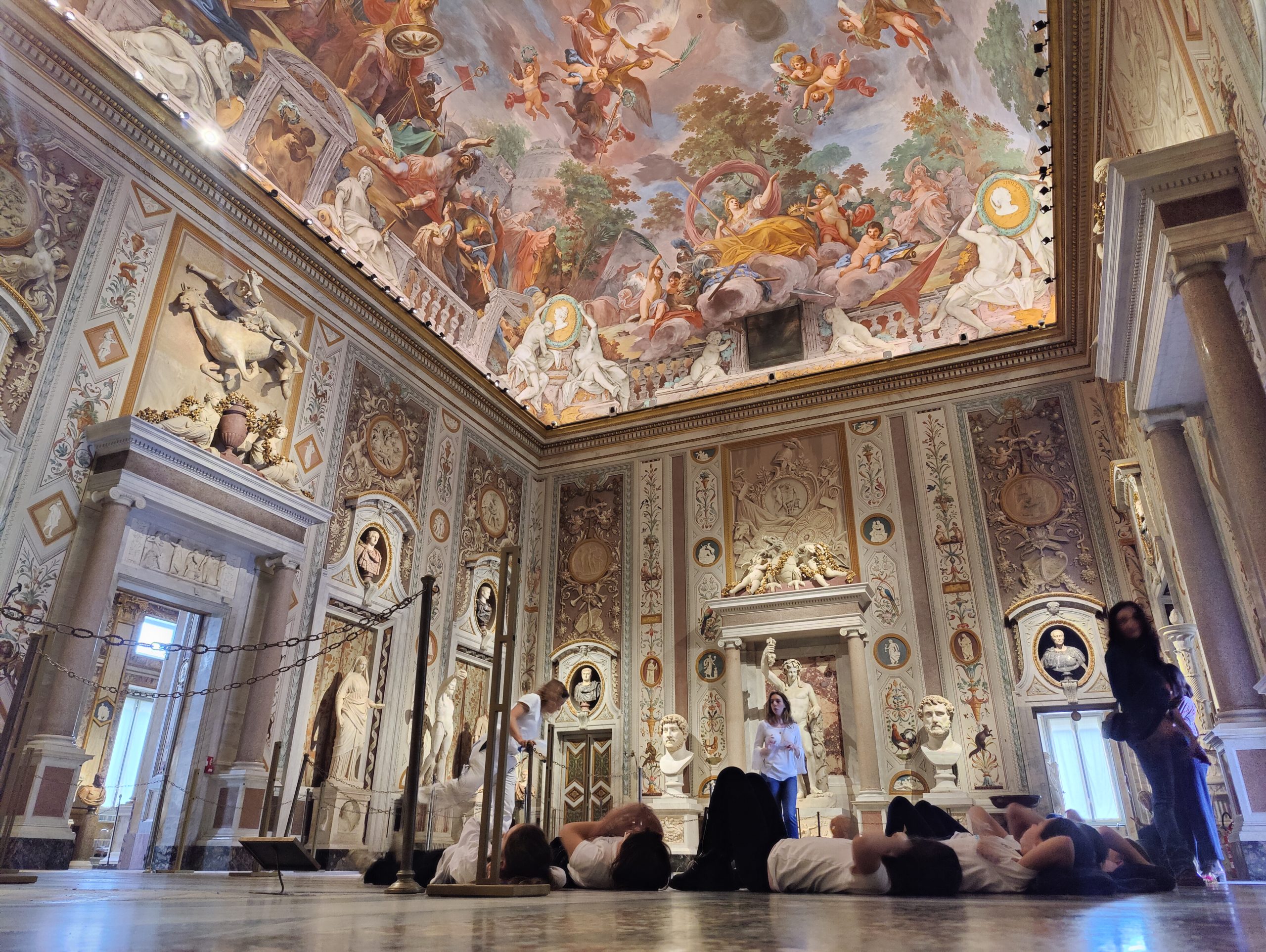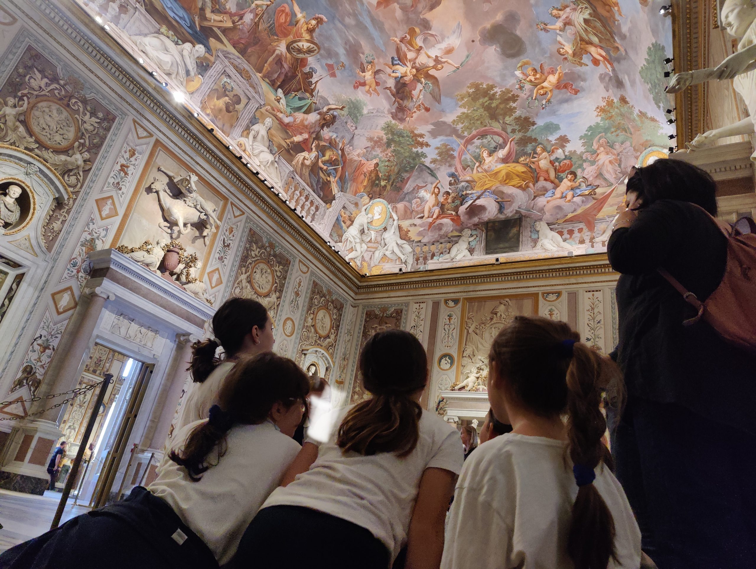 Nella meravigliosa cornice del salone “Mariano Rossi” hanno potuto approfondire le proprie conoscenze sulle tecniche artistiche dell’affresco e del mosaico, e godersi una visuale unica del soffitto di questa sala.