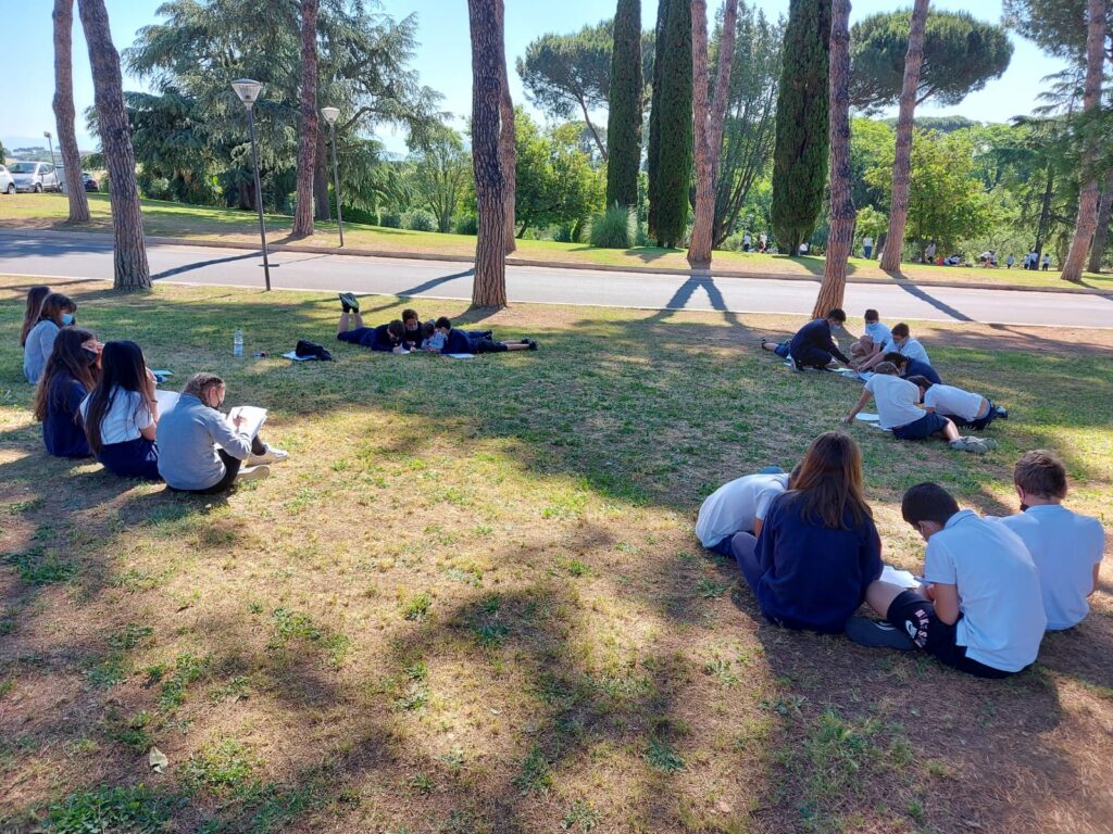 In questi ultimi giorni di scuola si sa, con l’arrivo delle belle giornate è difficile rimanere in classe a fare lezione…per questo i professori dell’Asisium cercano di inventare modi sempre nuovi e divertenti per sfruttare al massimo il bel tempo e i grandi spazi della scuola.