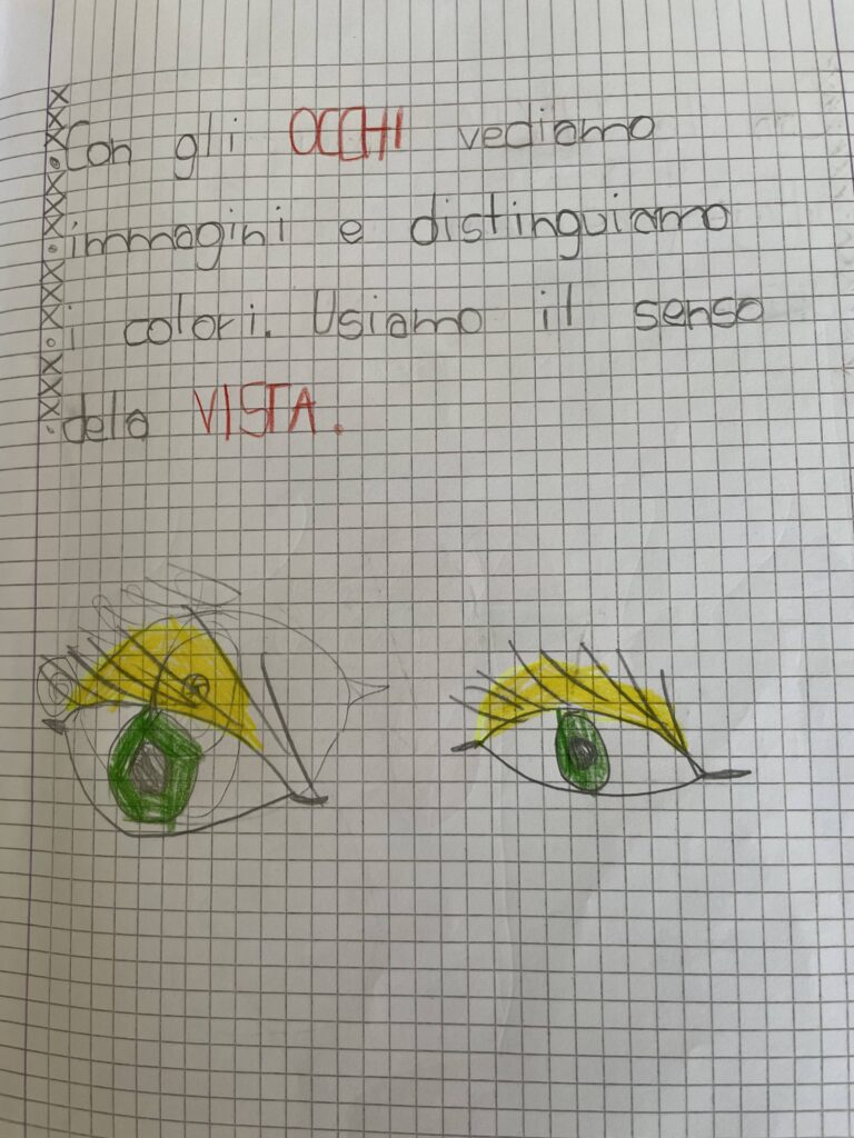 Infine ecco alcune pagine del quaderno di Scienze in cui i nostri bambini hanno imparato a conoscere i cinque sensi!