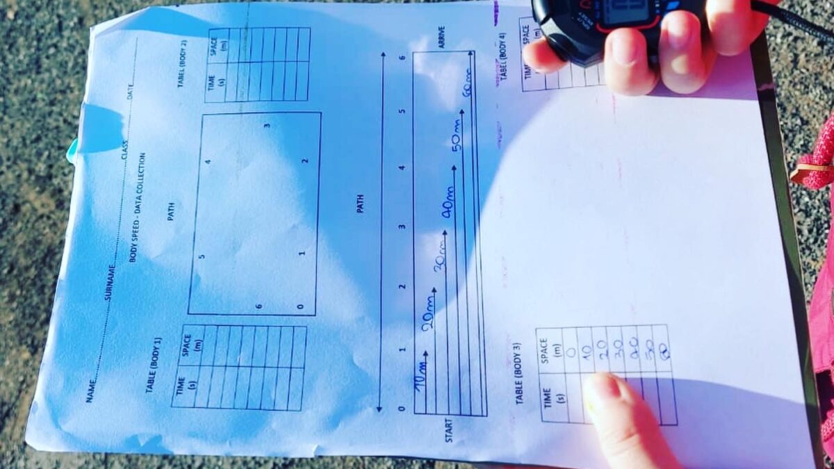 Gli alunni della 2A della Scuola Secondaria di I grado, insieme ai docenti di Scienze ed Inglese, hanno realizzato una bellissima esperienza all’aperto per sperimentare la velocità e le leggi della fisica…in inglese! Sfruttando i grandi spazi della scuola ed in particolare il campo di pattinaggio hanno potuto fare delle vere e proprie “gare” di corsa (anche in bicicletta!) misurando le distanze percorse con un metro e prendendo i tempi con un cronometro. In questo modo hanno potuto applicare direttamente le leggi studiate in classe per determinare la velocità…tutto in inglese!