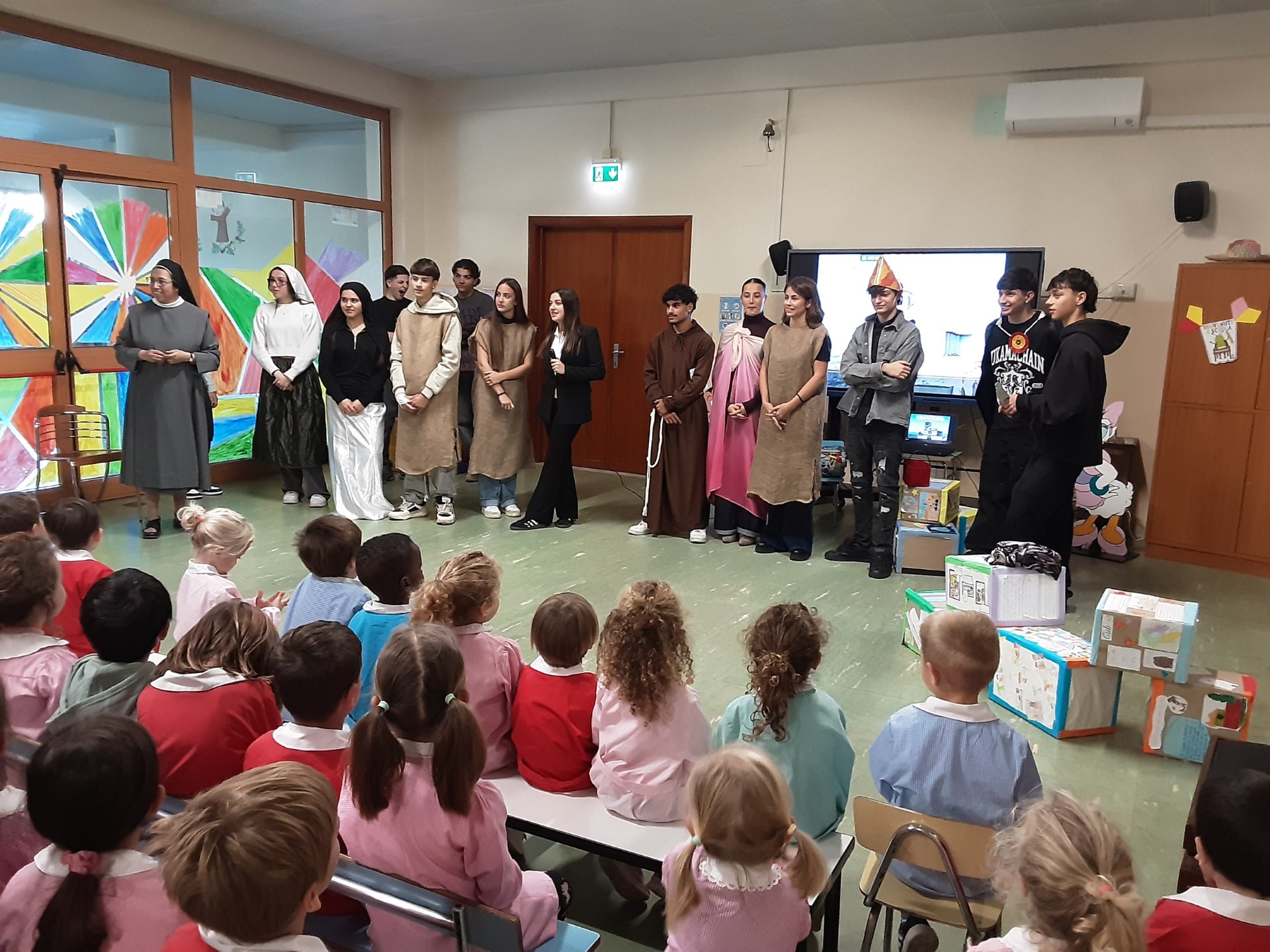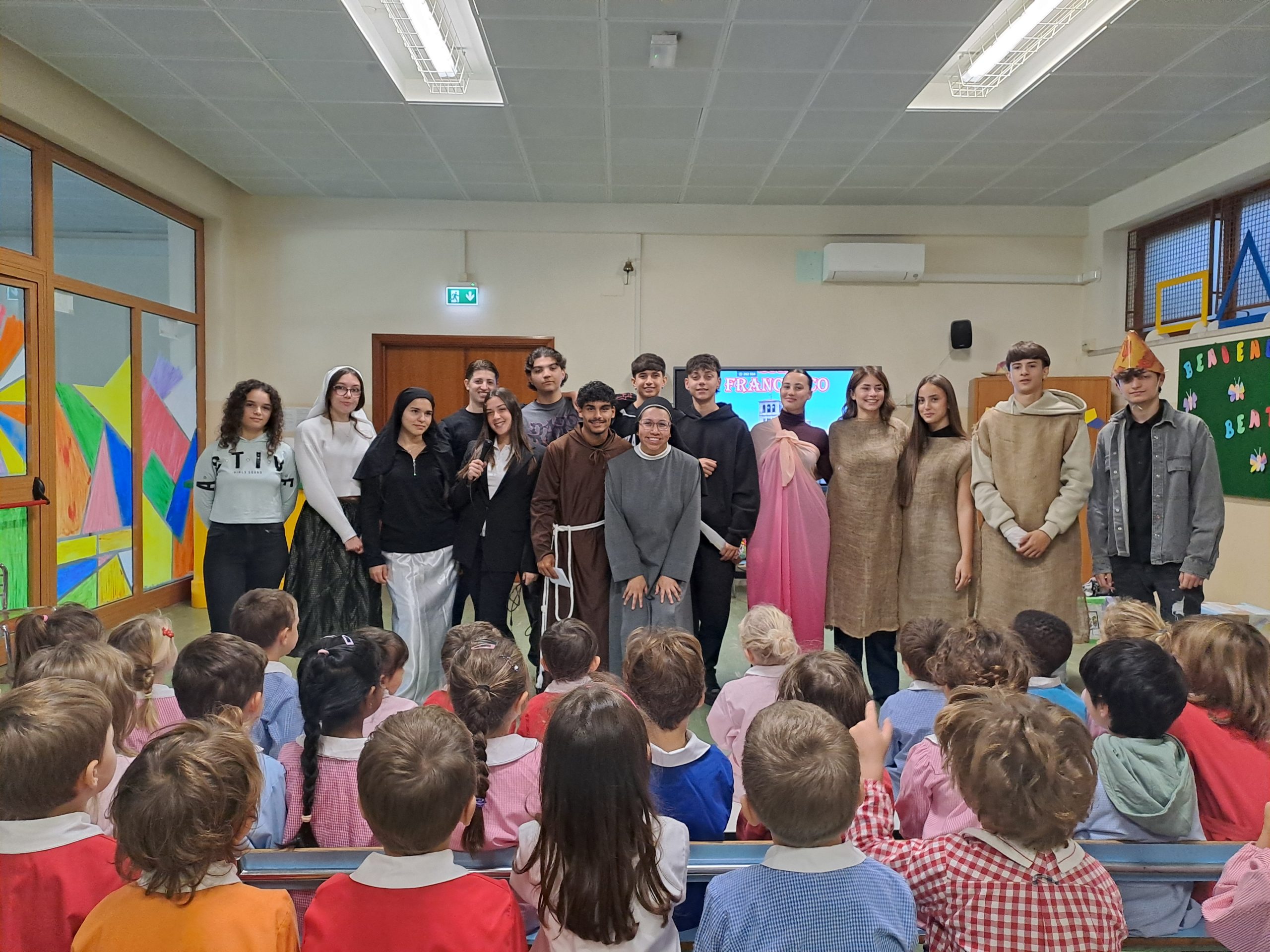 Inoltre i ragazzi del 4° Liceo Scientifico guidati da Sr Gabriela, la loro insegnante di religione, hanno rappresentato la vita di Francesco