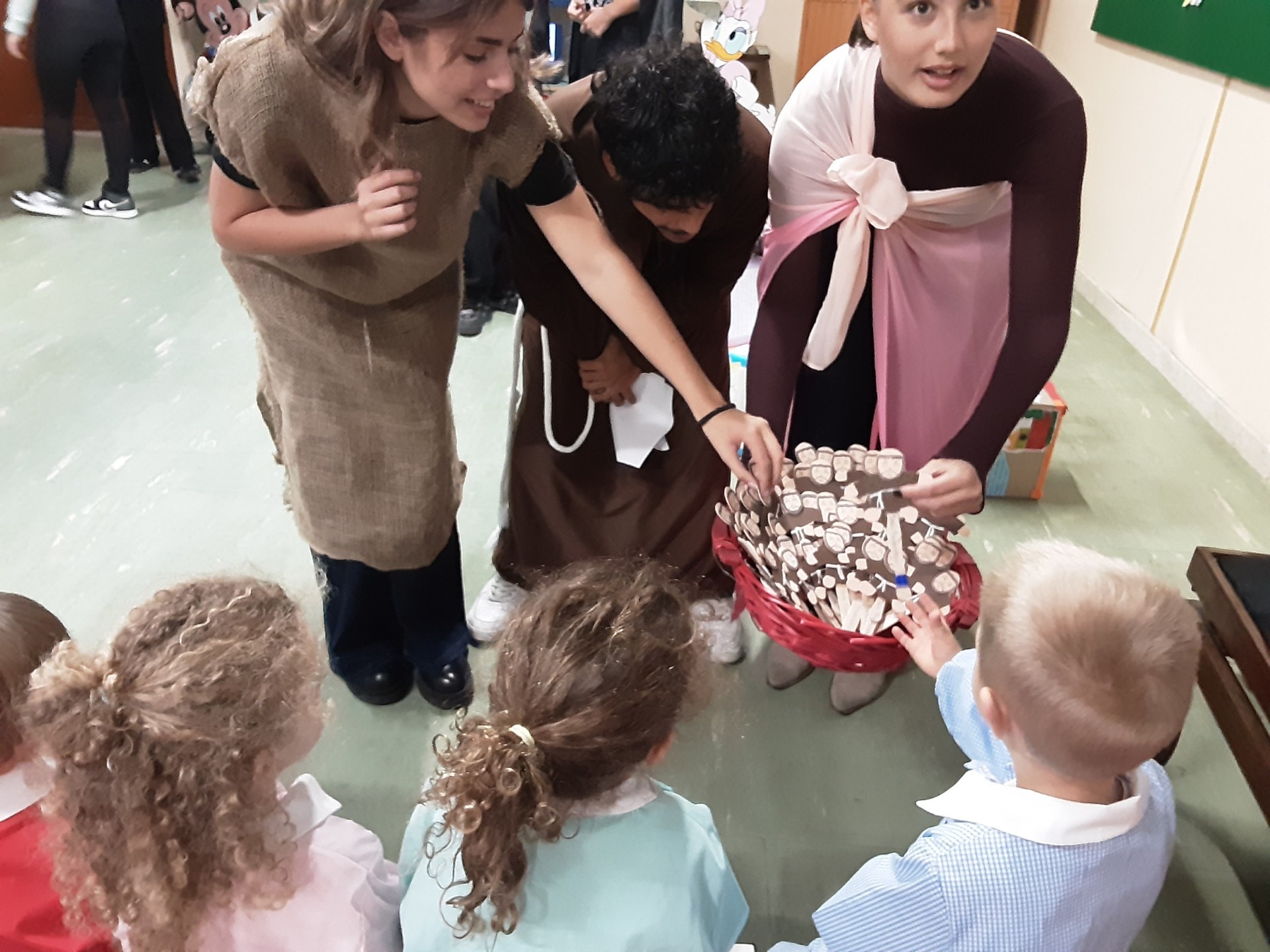 Per far comprendere ai bambini chi era Francesco d’Assisi abbiamo visto insieme alcuni degli episodi più avvincenti della sua vita e, per collegare il messaggio di S. Francesco al rispetto per la natura, l’amore per gli animali abbiamo organizzato una passeggiata nel parco.