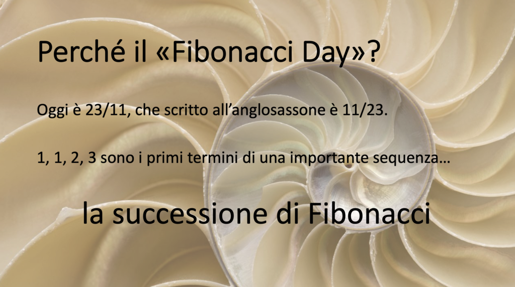 Oggi è 23-11, che scritto all’anglosassone è 11-23…e questi numeri, 1-1-2-3, sono i primi termini della celebre successione di Fibonacci, una sequenza di numeri che da secoli affascina l’uomo perché si può riconoscere in molti aspetti della natura.