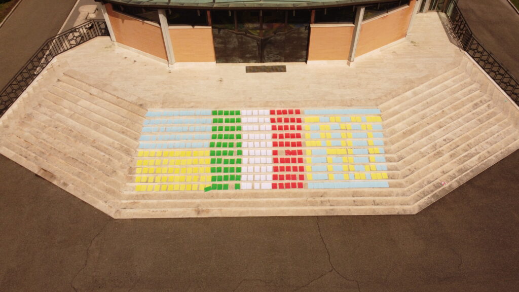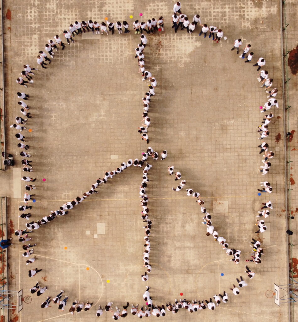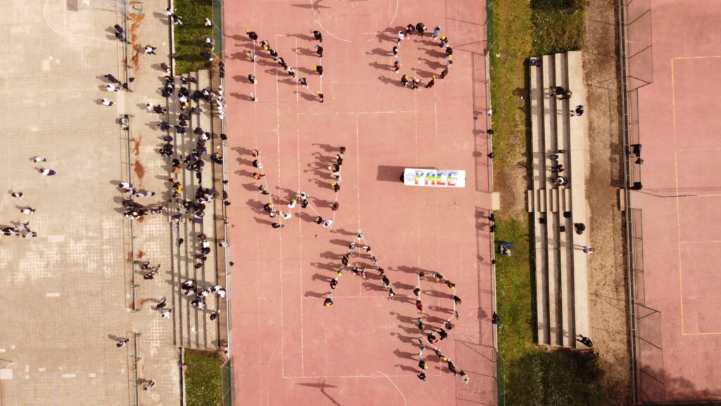 Ieri 4 aprile 2022 alle ore 11:00 l’Istituto Asisium, ispirandosi alla proposta del Movimento di Cooperazione Educativa ha realizzato un flash mob per la pace! Gli alunni della Scuola Primaria hanno unito le forze per costruire una bandiera con la scritta “PACE”, gli alunni della Scuola Secondaria di I grado hanno fatto dei bellissimi disegni che, messi insieme, ricreavano il simbolo della pace. Gli studenti del Liceo Scientifico hanno realizzato un cartellone per la pace e si sono ordinati in uno dei campi sportivi per formare la scritta “NO WAR” e dire a tutti che è meglio giocare amichevolmente insieme che farsi la guerra. Infine, gli alunni della Scuola Secondaria di I grado, con il supporto dei docenti, hanno fatto una piccola coreografia sulle note di “Heal the World” di Michael Jackson mentre, visti dall’alto, rappresentavano il simbolo della pace!