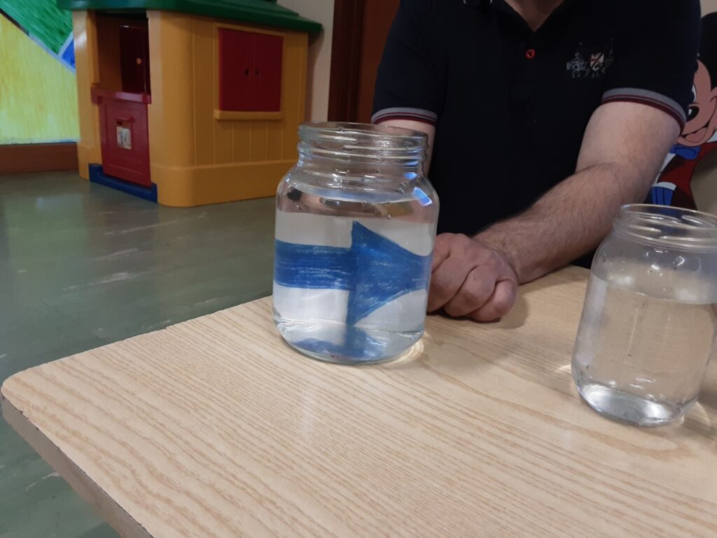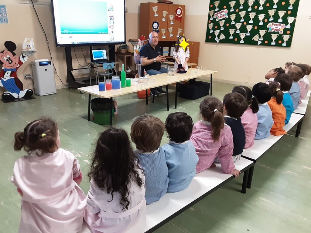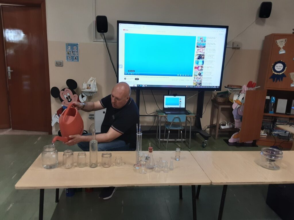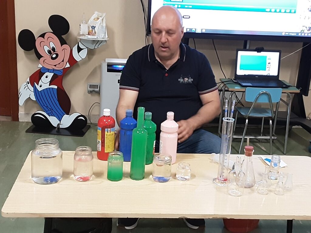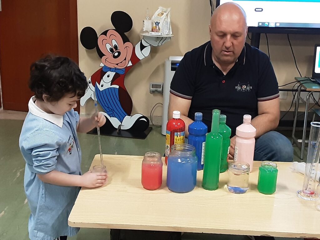 Quindi oggi. con lo specialista Gino, abbiamo realizzato un piccolo un laboratorio riguardante la nostra “Amica acqua” con diversi esperimenti scientifici.