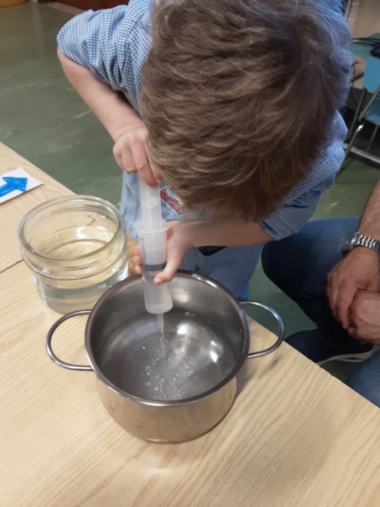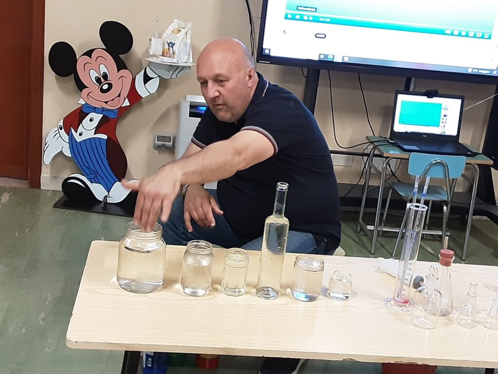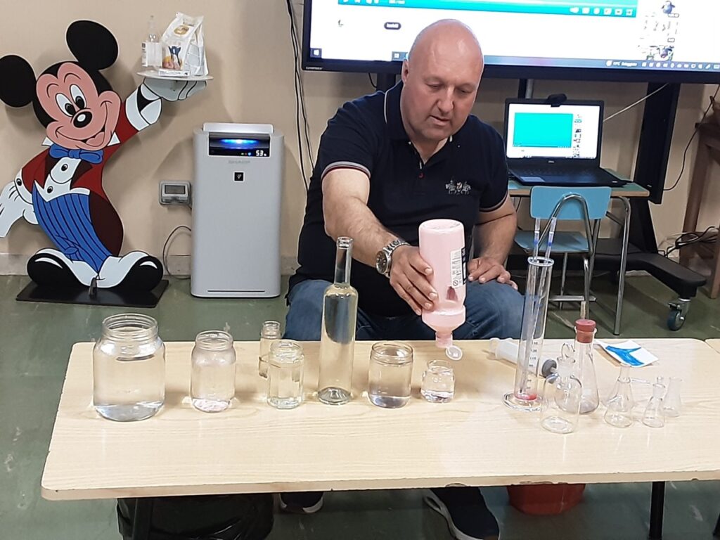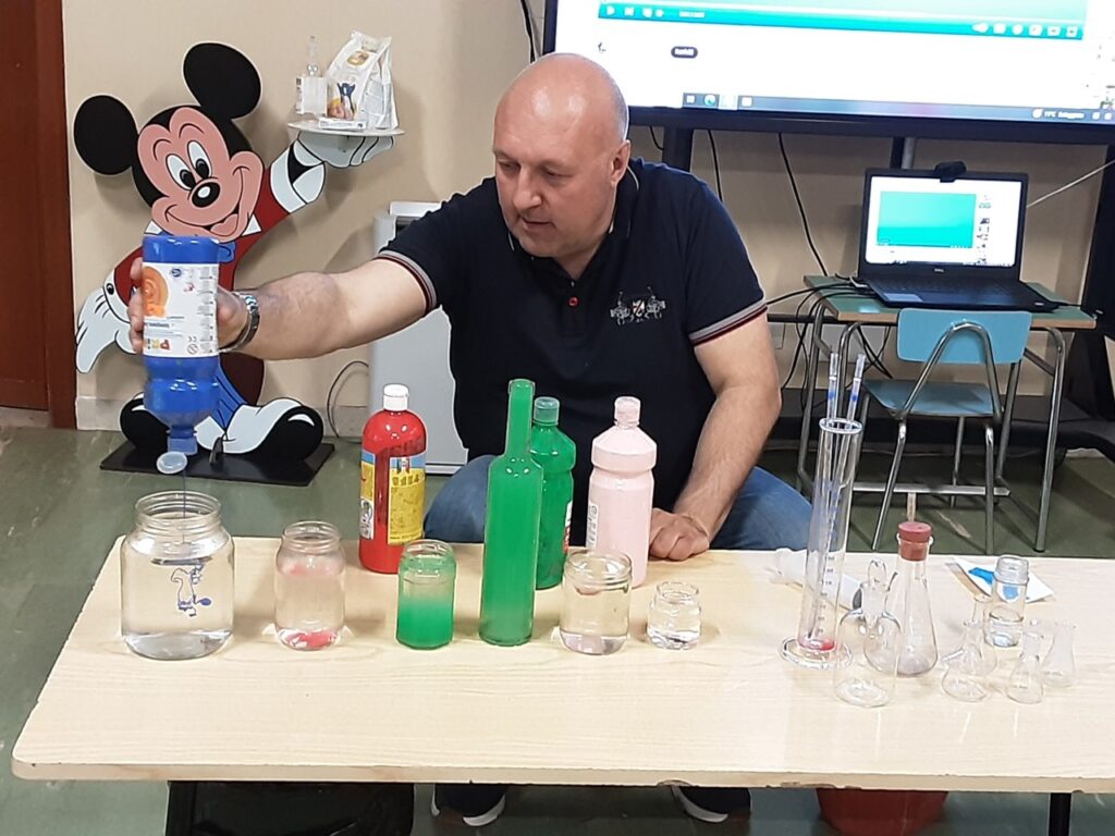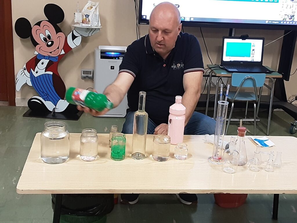 Quindi oggi. con lo specialista Gino, abbiamo realizzato un piccolo un laboratorio riguardante la nostra “Amica acqua” con diversi esperimenti scientifici.