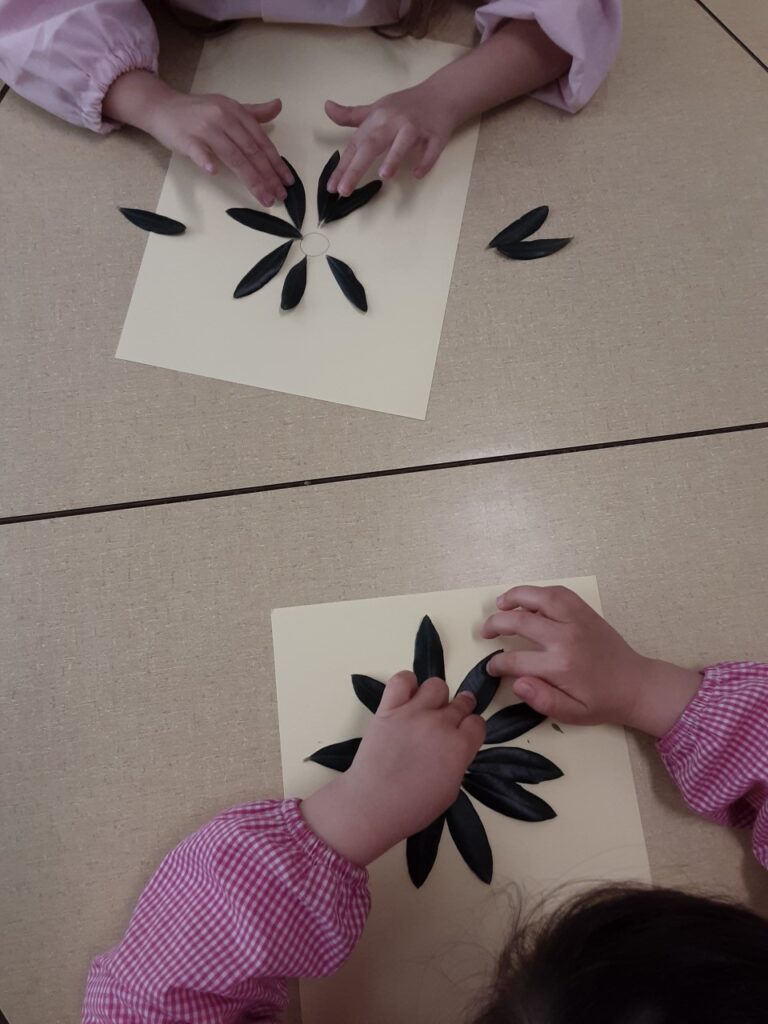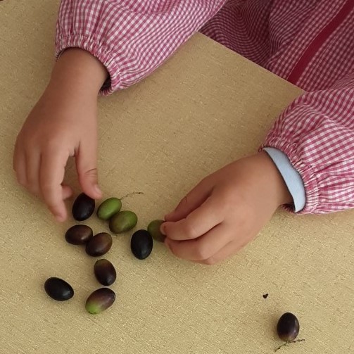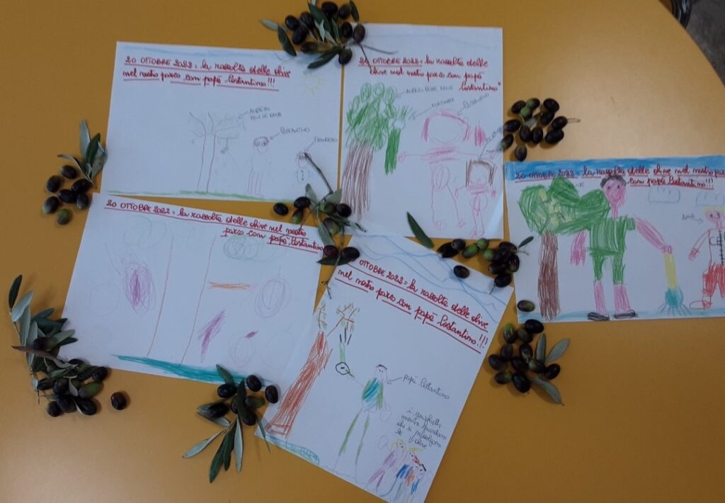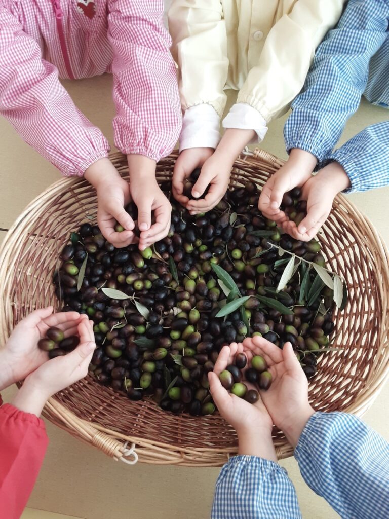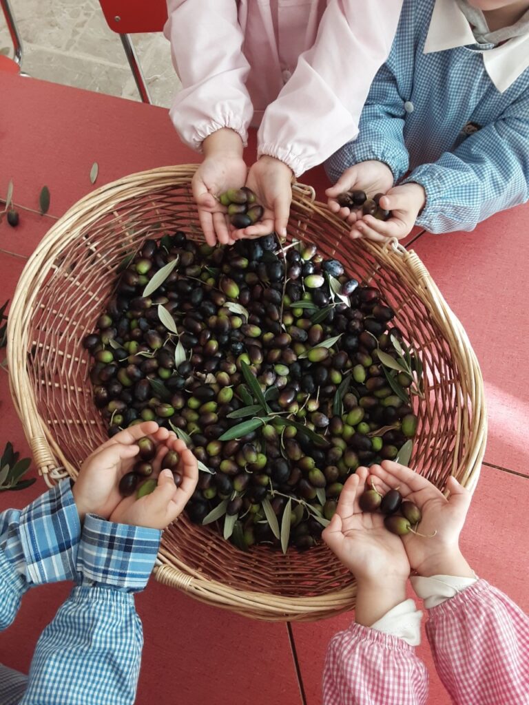 Dopo il raccolto delle olive, i bambini sodisfatti del loro lavoro, hanno portato in sezione un ramo di ulivo con delle olive, lo hanno osservato attentamente, hanno toccato le foglie e le olive per scoprirne le caratteristiche percettive e sensoriali.