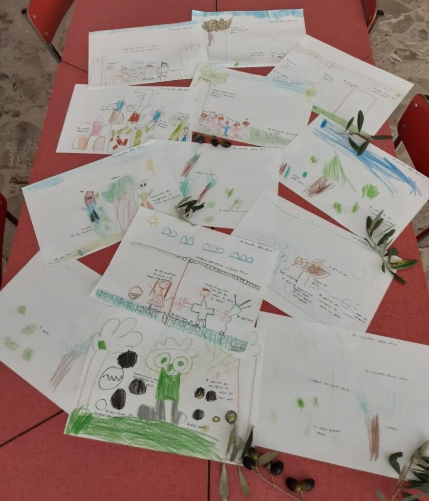 Noi insegnanti abbiamo spiegato ad ogni gruppo il processo di trasformazione dalle olive all’olio, utilizzando immagini tratte da libri e da internet.