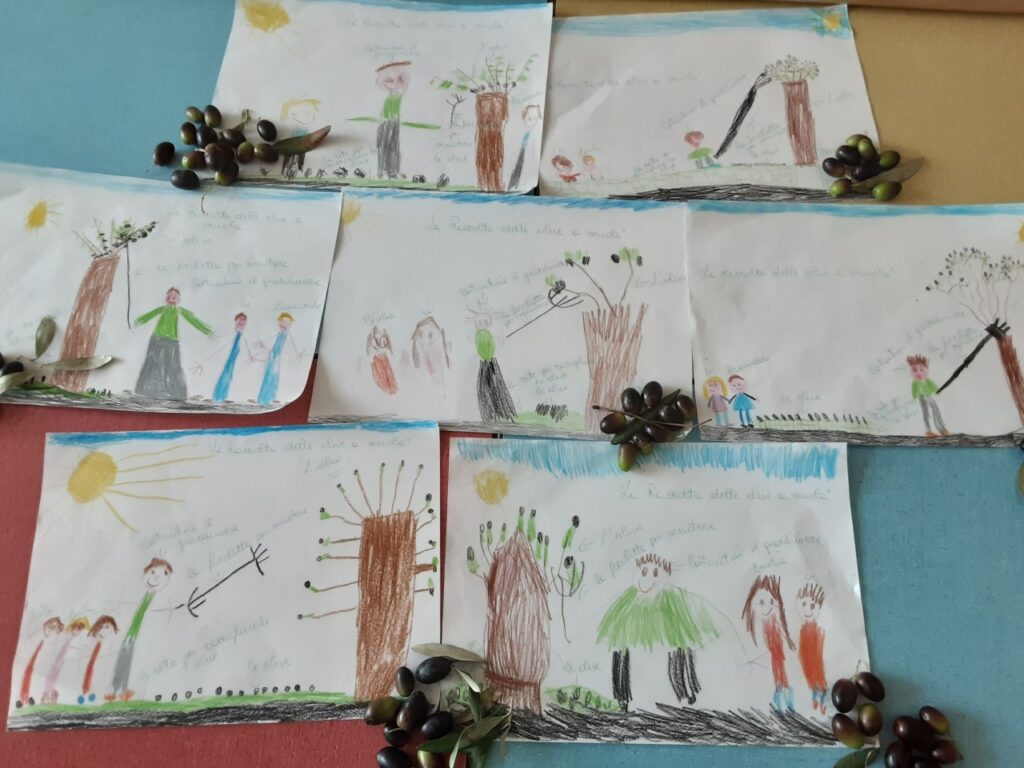 Successivamente i bambini, hanno prima espresso a parole il frutto della elaborazione vissuta e riprodotto poi graficamente la raccolta delle olive.