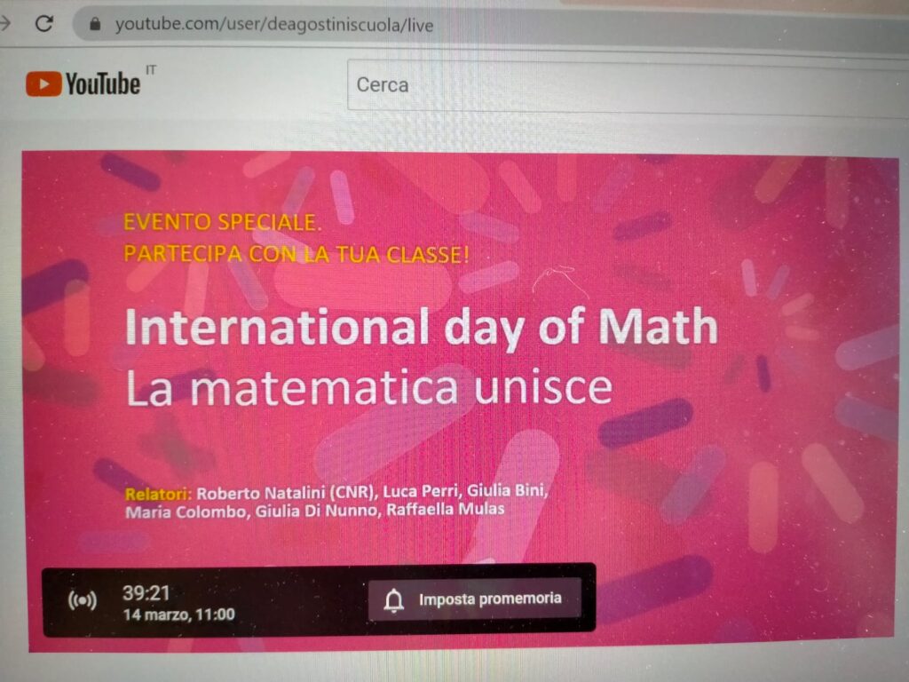 Anche gli studenti del Liceo Scientifico hanno celebrato il Pi Greco Day: in particolare, gli alunni della prima classe con la Prof.ssa Gioia Pierdomenico, hanno partecipato al webinar “La matematica unisce” organizzato da DeA Scuola.
