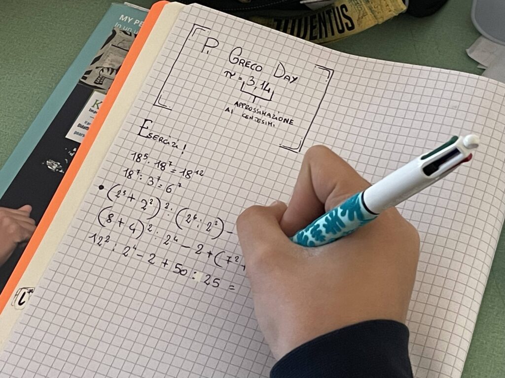 Oggi è il Pi Greco Day, giornata nella quale si celebra la Matematica! E quale miglior modo per celebrare la Matematica se non facendo delle appassionanti lezioni?! Per questo alcune classi della Scuola Secondaria di I grado (nelle foto qui sotto vediamo alcuni momenti tratti dalle lezioni in 1B e 1C), dopo una breve introduzione al pi greco, una delle costanti matematiche più famose, hanno svolto esercizi alla lavagna…in aria di festa!