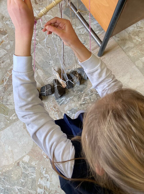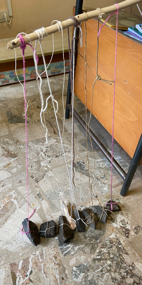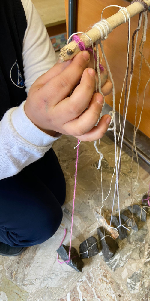 I bambini delle terze classi della Scuola Primaria, affrontando lo studio del Neolitico (terminato “appena” 5500 anni fa!) hanno realizzato un telaio a pesi, che è stato il primo telaio inventato dall’uomo ed è stato utilizzato anche da Penelope per tessere la famosa tela con cui evitò di sposare i proci (ma questo è programma di quinta…).